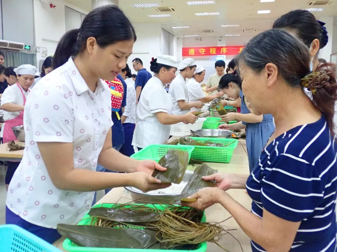 ▲陸豐分公司:餐廳員工利用周末時間制作手工粽子,為員工送上節日祝福。