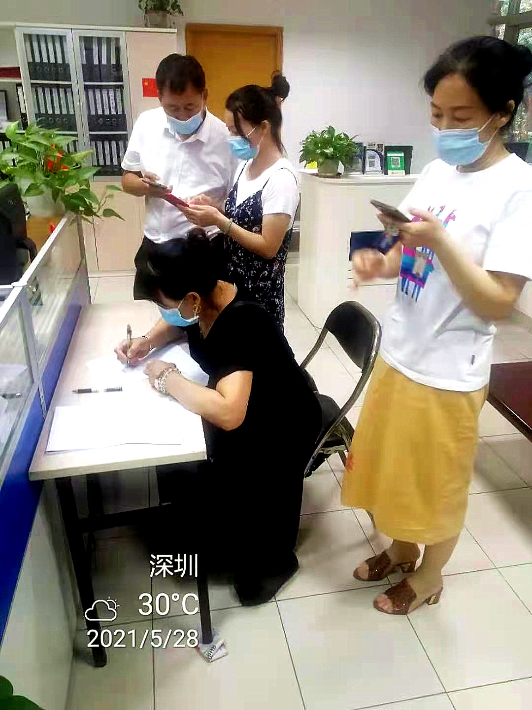 雖已是周五下班時間,管理處5位員工選擇了一起加班加點給住戶辦理預約登記,住戶完成疫苗接種建檔和身份信息登記后,居民就可以取到疫苗號了。僅4個小時,150個疫苗號全部被領取完。