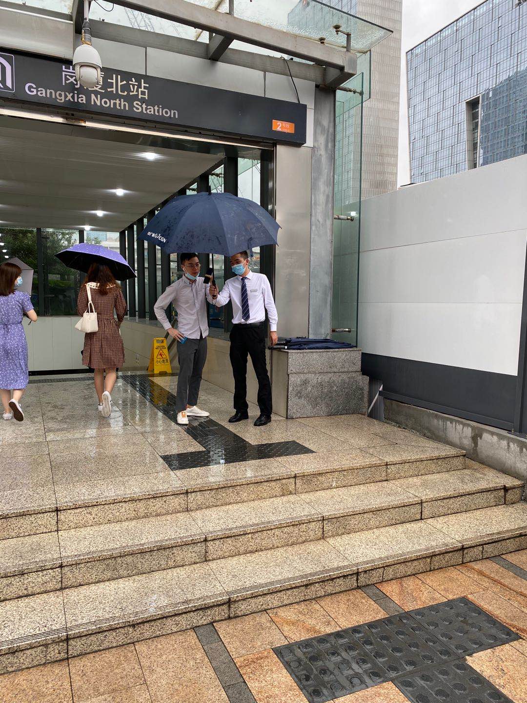 了解到這個情況,中廣核服所屬物業(yè)公司中廣核大廈管理處服務團隊立即安排人員踏著大雨前往地鐵站、公交站臺,接送沒帶傘的員工。當看到服務人員帶著公司標識的雨傘出現(xiàn)在站內(nèi),大家露出了喜悅的笑容,紛紛為管理處及時細致的服務豎起大拇指。服務人員多次往返大廈、地鐵站與公交站之間,一趟趟護送。濕透的衣服、鞋子是物業(yè)服務團隊為員工護航的見證。