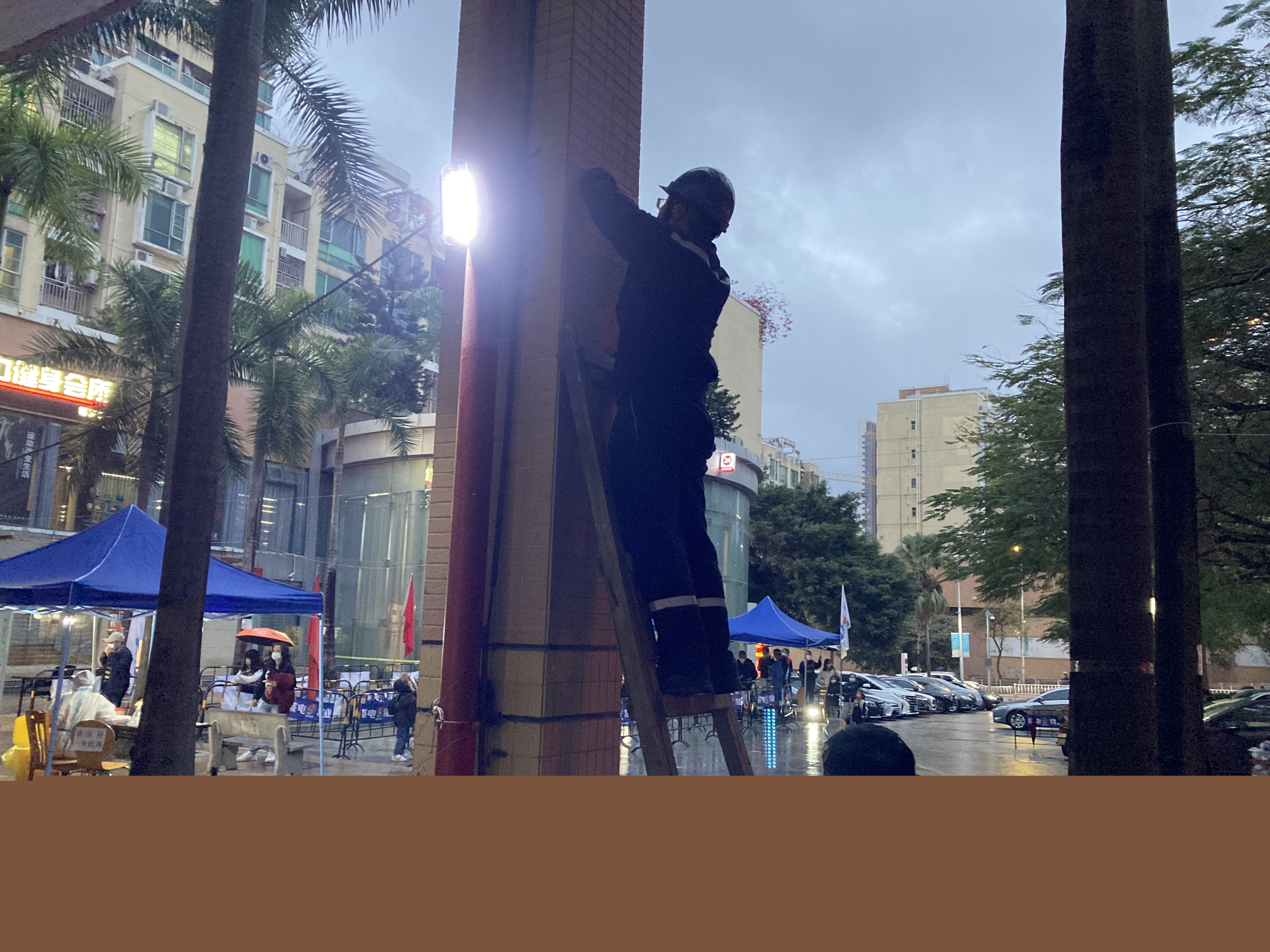 傍晚時分,雨還是稀稀拉拉地下著,機電人員又在忙碌著給雨棚安裝照明,義工們穿著雨衣或打著雨傘依舊在檢測現場,人們打著雨傘在陰冷的雨天排隊做核酸,也有了一絲絲溫暖,安全主管林勇杰說:“不知道核酸檢測會在晚上幾點結束,也不知道明天會在幾點開始,但是我們知道,一有通知消息,我和其他同事馬上行動,繼續為居民們做好服務……”
