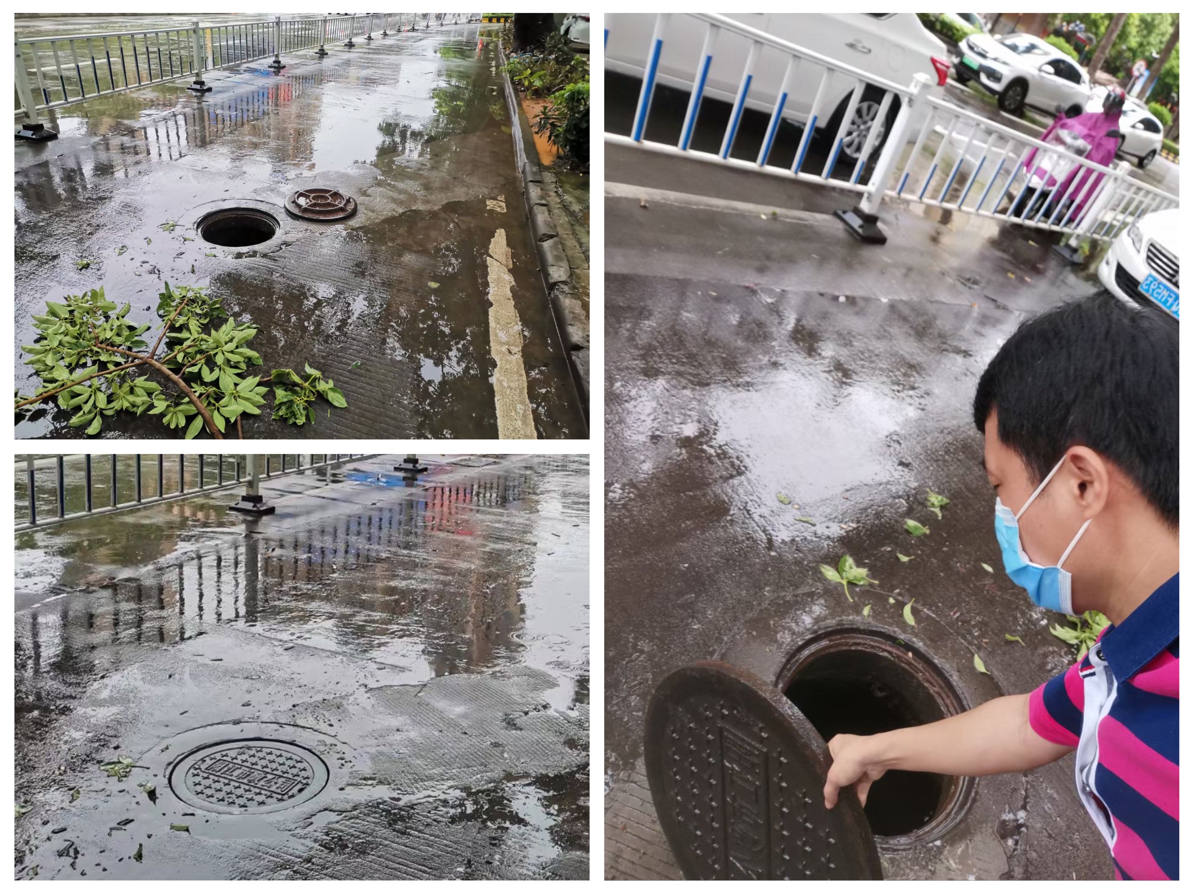 7月22日的早晨,中廣核服陽江分公司共產(chǎn)黨員張金華自駕前往市體檢中心,發(fā)現(xiàn)道路中間的一個井蓋未蓋上,前方路過的摩托車差點掉落進去。他第一時間將車停靠在路邊,主動擺放好應急停車標識。通過觀察,判斷是臺風降水過多,導致井內(nèi)排水不暢、滿溢,將井蓋沖出。